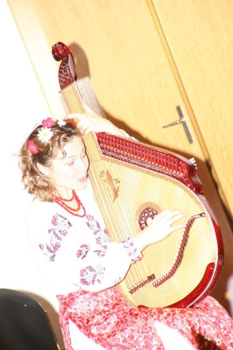 Die Bandura ist ein traditionelles ukrainisches Musikinstrument. Sie hat starke Ähnlichkeit mit der Harfe oder der Laute. Ihr Klang erinnert an ein Cembalo.